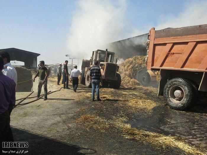 انبار علوفه یک واحد گاوداری در روستای خاکشان بخش بشاریات آبیک طعمه آتش شد