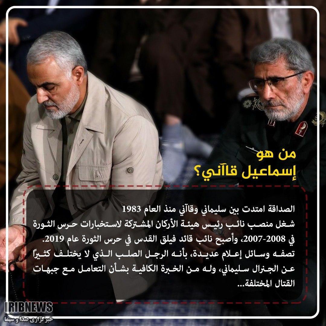 شبکه تلویزیونی الجزیره: سردار قاآنی فرمانده جدید نیروی قدس سپاه پاسداران ایران تاکید کرد تا زمان بیرون راندن کامل آمریکا از منطقه به مبارزه ادامه خواهد داد.