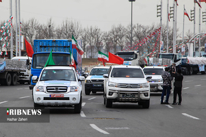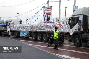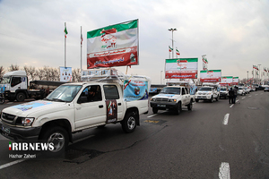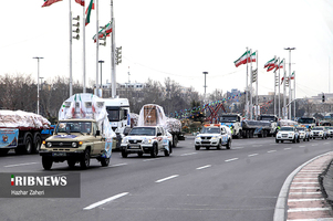 به گزارش گروه عکس خبرگزاری صدا و سیما؛ با همکاری سپاه حضرت محمد رسول ا... (ص) تهران بزرگ به مناسبت بزرگداشت ایام ا... دهه فجر انقلاب اسلامی مراسم باشکوه خودرویی توزیع ۱۱۰ هزار بسته کمک مومنانه صبح امروز جمعه ۱۵ بهمن ماه ۱۴۰۰ از میدان انقلاب تهران تا میدان آزادی با حضور سردار حسن زاده فرمانده سپاه حضرت محمد رسول ا... (ص) تهران بزرگ و زاکانی شهردار تهران و مسئولین شهری و فرماندهان برگزار شد.این بزرگترین کاروان کمک مومنانه سپاه محمد رسول الله (ص) تهران بزرگ با ۱۲۰۰ خودرو و ۱۱۰هزار بسته کمک معیشتی می‌باشد. علیرضا زاکانی شهردار تهران نیز در این مراسم، با تشکر از اقدامات سپاه محمد رسول الله (ص)، اظهار کرد: سپاه امروز خدمت را برای خود یک مدالی بر سینه خلق کرده و امروز ما جلوه بزرگ آن را از سپاه بزرگ محمد رسول الله (ص) مشاهده می‌کنیم.