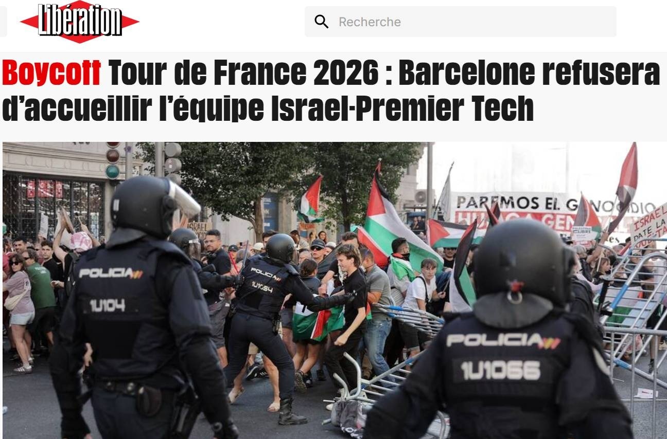 لیبراسیون – تحریم؛ مسابقات دوچرخه سواری دور فرانسه، بارسلون با شرکت تیم رژیم اسرائیل مخالفت خواهد کرد.