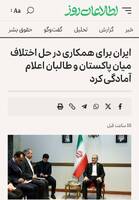 - ایران برای همکاری در حل اختلاف میان پاکستان و طالبان اعلام آمادگی کرد.