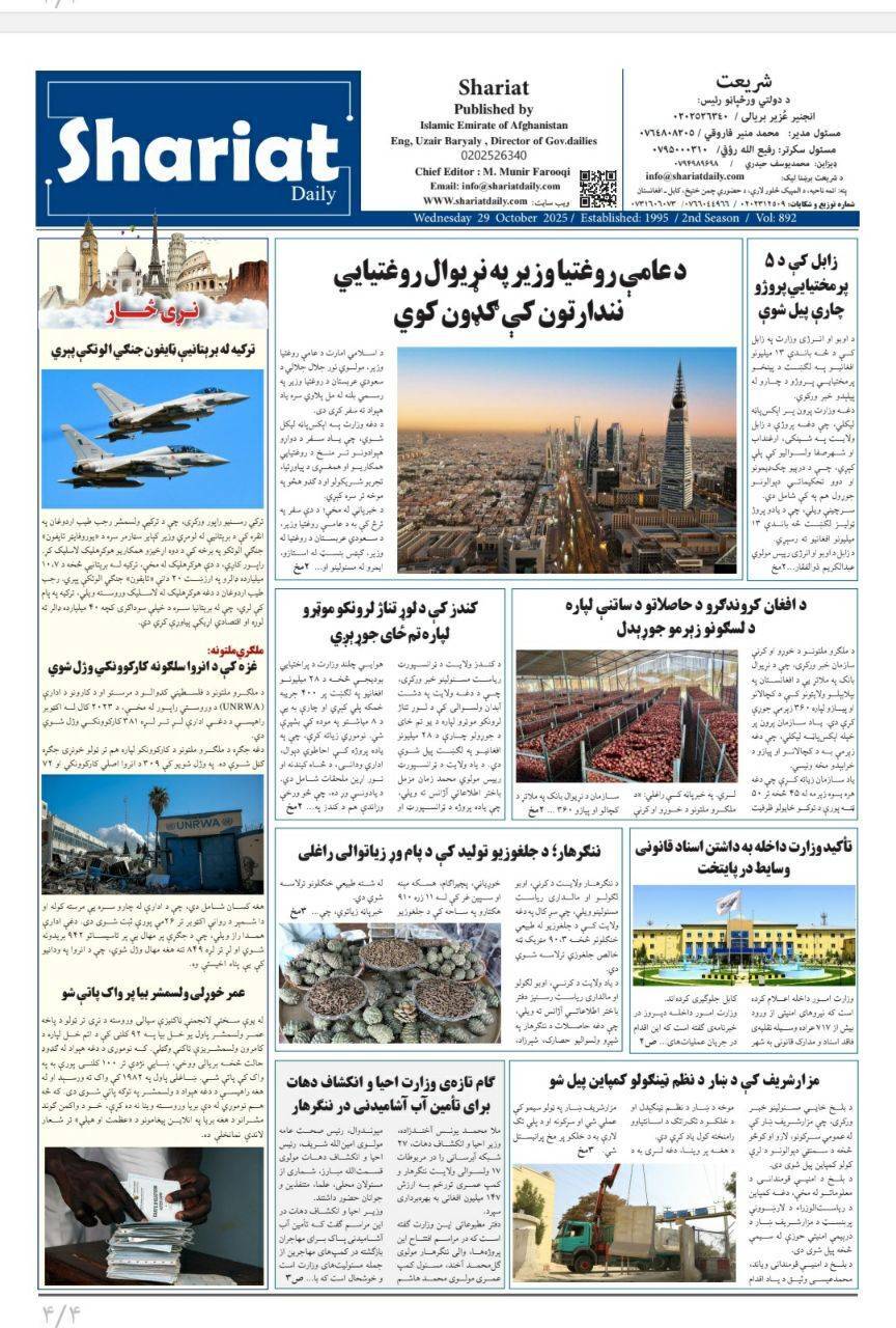 مهمترین عناوین خبری روزنامه‌های امروز افغانستان