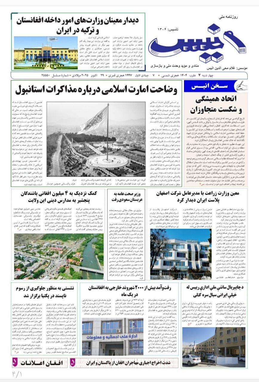 - بیانیه امارت اسلامی درباره مذاکرات با پاکستان در ترکیه.